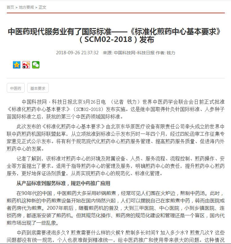 9月26日下午世界首個(gè)煎藥中心服務(wù)標準——《標準化煎藥中心基本要求》媒體發(fā)布溝通會(huì )在東華原醫療舉行。