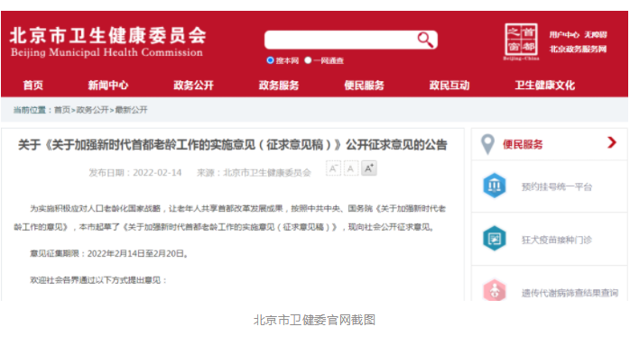 北京市《關(guān)于加強新時(shí)代首都老齡工作的實(shí)施意見(jiàn)(征求意見(jiàn)稿)》發(fā)布