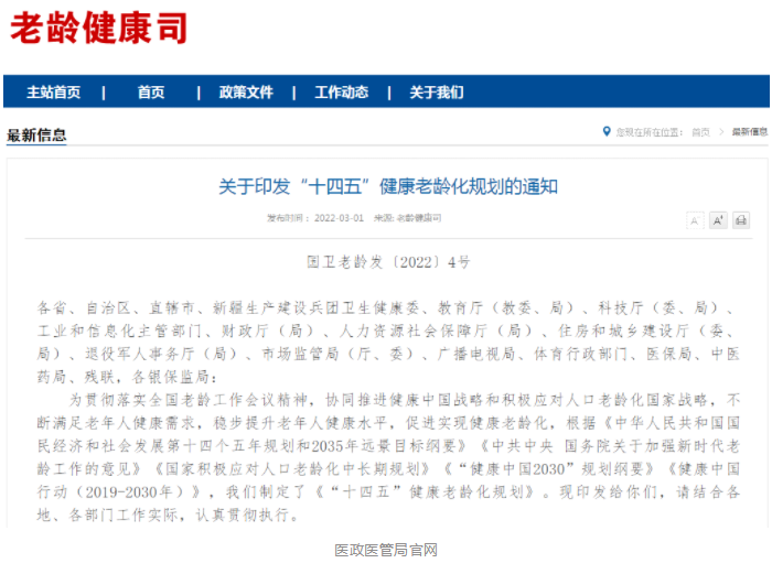 健康前沿 | 十五部門(mén)聯(lián)合印發(fā)《“十四五”健康老齡化規劃》