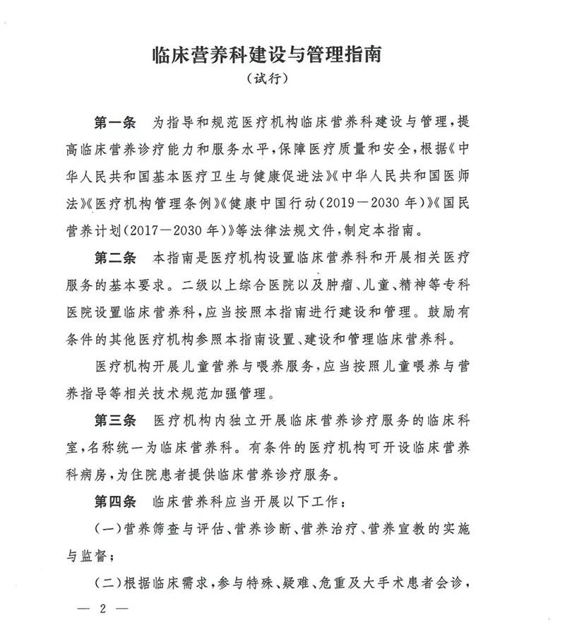 ?國家衛健委發(fā)布《臨床營(yíng)養科建設與管理指南》通知