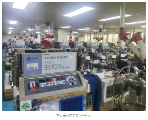 西安市中醫醫院煎藥中心占地面積2000余平方米,應用東華原現代化煎藥中心解決方案,硬件上配備了十功能自動(dòng)煎藥機、中藥湯劑包裝機等150余臺設備,軟件上則應用東華原自主研發(fā)的智能化煎藥控制系統,從處方管理到各流程線(xiàn)上管控,再到中藥飲片煎煮、湯劑包裝的具體操作,做到每個(gè)環(huán)節都專(zhuān)業(yè)、精準、高效。