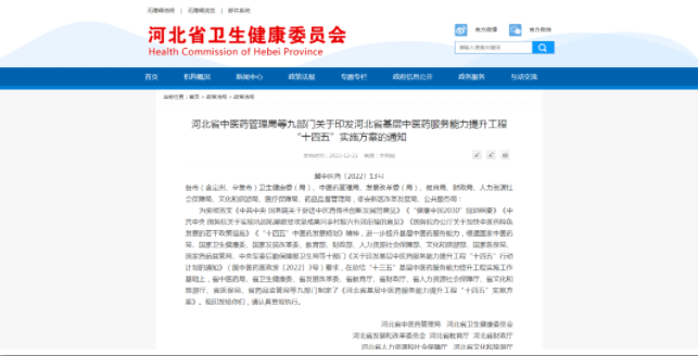 河北省基層中醫藥服務(wù)能力提升工程“十四五”實(shí)施方案