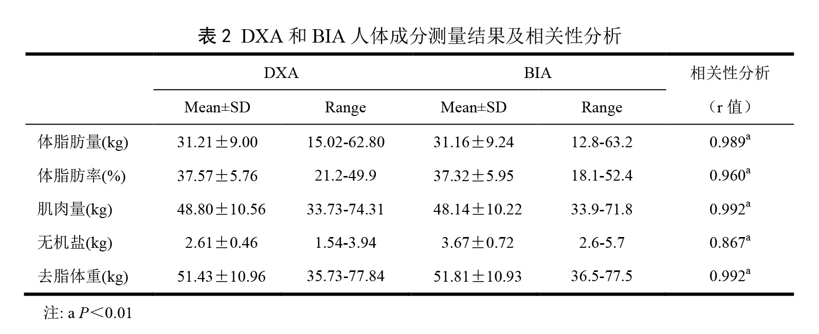 BIA與DXA測量超重和肥胖成人人體成分分析儀的對比研究
