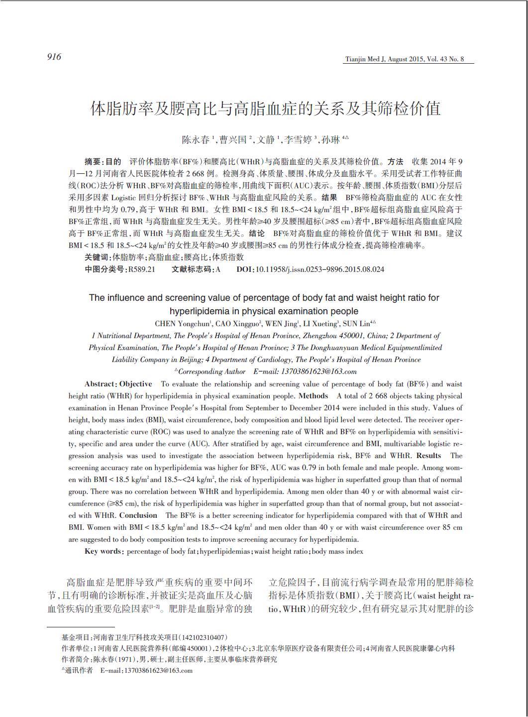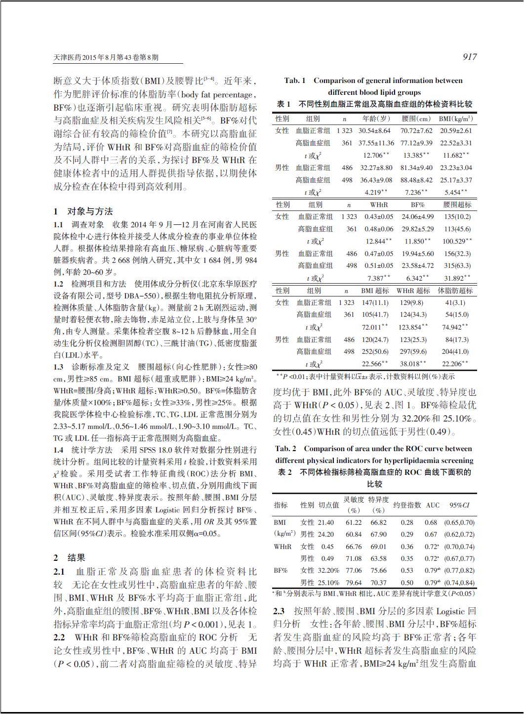 體脂肪率及腰高比與高脂血癥的關(guān)系及其篩檢價(jià)值