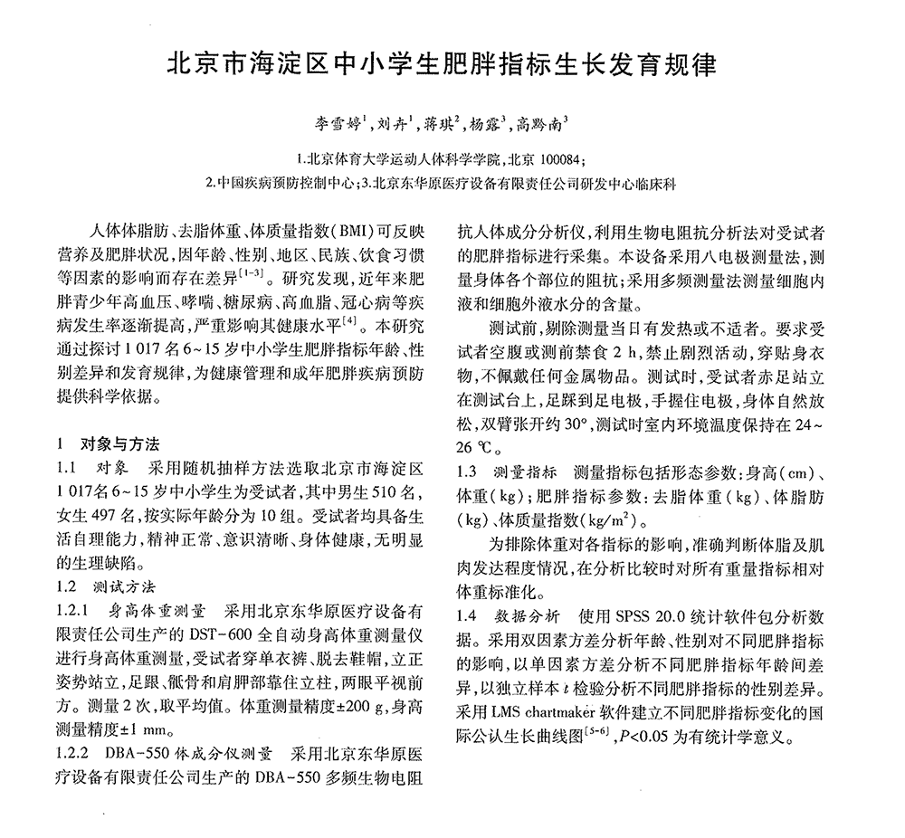 北京市海淀區中小學(xué)生肥胖指標生長(cháng)發(fā)育規律