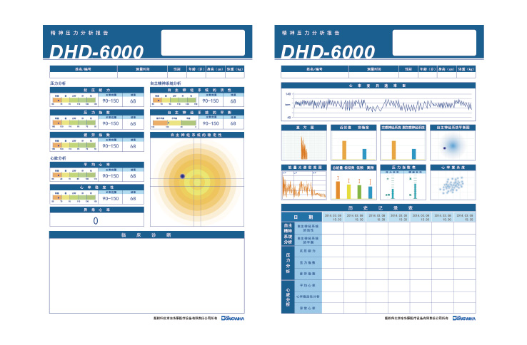 - 心率變異性檢測儀DHD-6000通過(guò)對心率變異(HRV)的分析,測量自主神經(jīng)系統的交感和副交感神經(jīng)功能,準確分析由于壓力引起的自主神經(jīng)系統失去平衡所導致多種功能紊亂,用于評估心理健康狀況,可作為普通人群精神心理類(lèi)疾病及心理類(lèi)疾病所引起的相關(guān)疾病的早期預警指標,達到早期發(fā)現,早期治愈的目的。