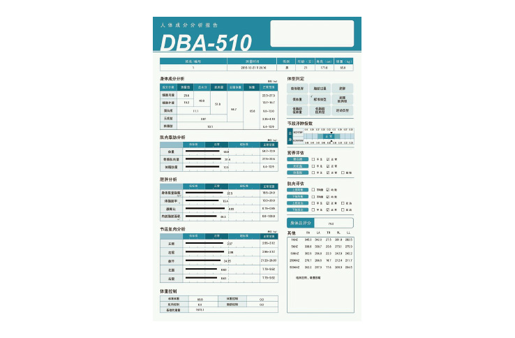 - 測量項目:總水分,細胞內液,細胞外液,蛋白質(zhì),無(wú)機鹽,體脂肪量,體重,肌肉量,去脂體重,骨骼肌肉量,身體質(zhì)量指數,體脂肪率,腰臀比,內臟脂肪面積,節段肌肉量,體重控制,體型判定,全身浮腫指數,營(yíng)養評估,肌肉評估等。