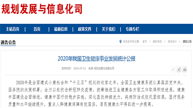 2021-07-20來(lái)源:衛生健康事業(yè)發(fā)展統計公報 -