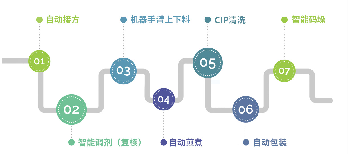 中藥飲片智能調劑 · 機器手臂上下料控制 · 全自動(dòng)煎煮設備 CIP全自動(dòng)一體化清洗系統· 機器碼垛 · 物料傳送帶運輸